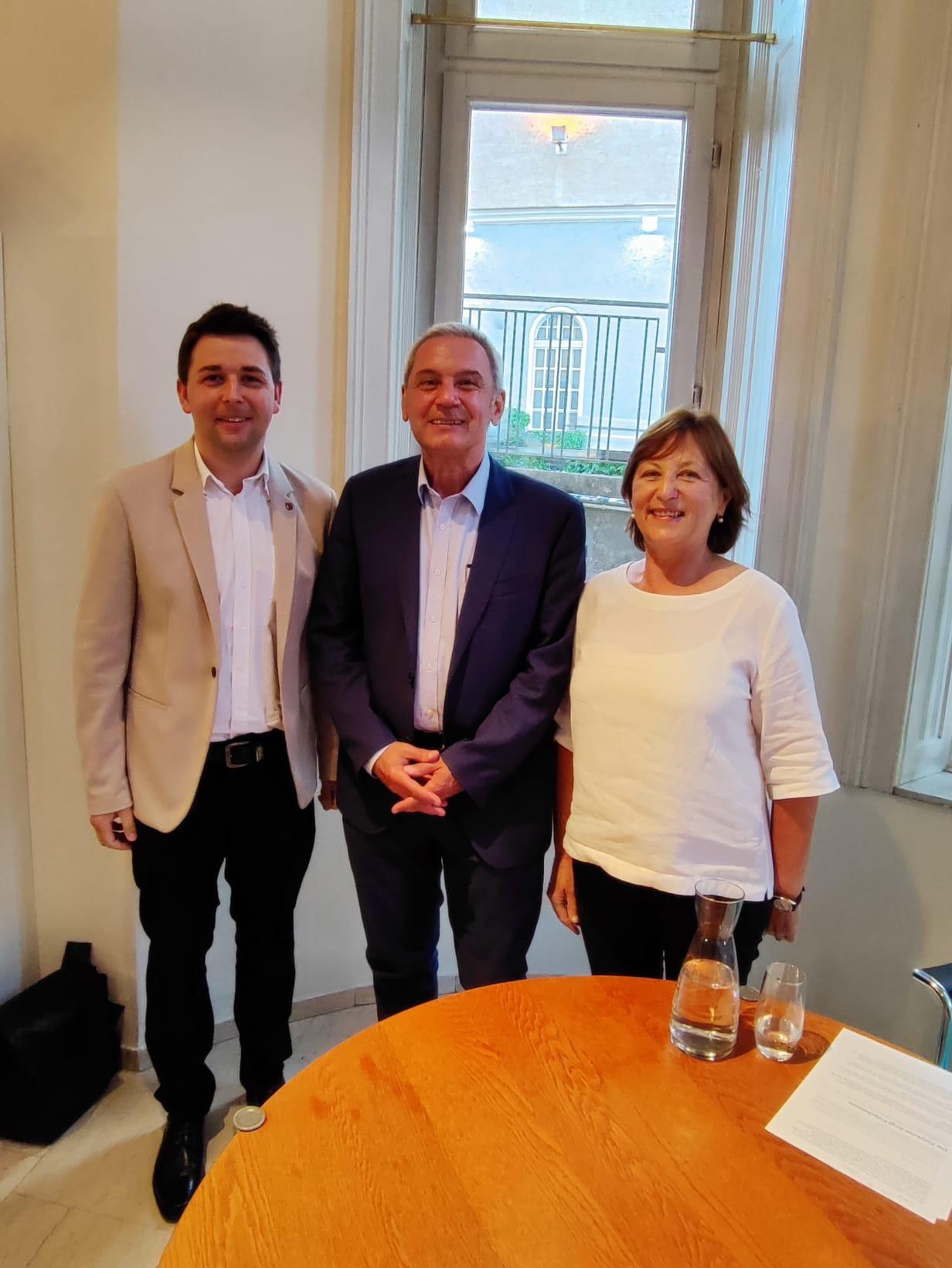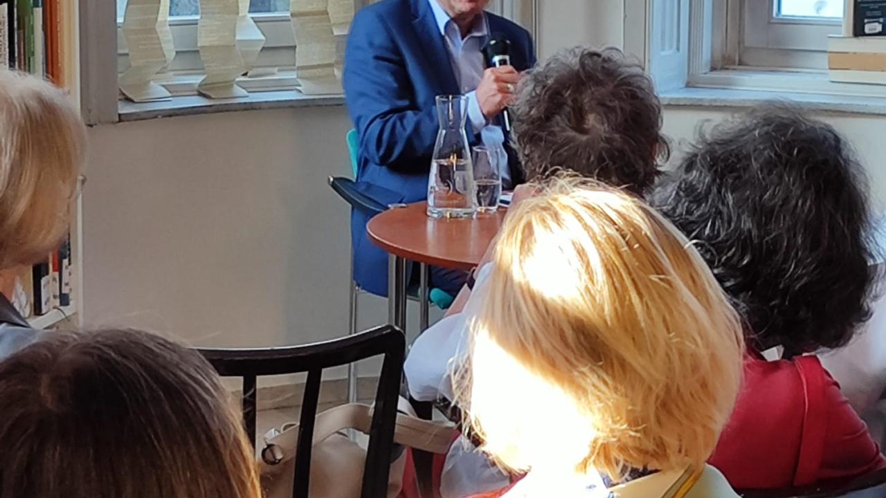 Peter Fritz, Außenpolitik-Journalist beim ORF mit Stationen in Brüssel, Berlin, Washington, Wien und Klagenfurt am Wörthersee in in einer zwanglosen Gesprächsrunde.